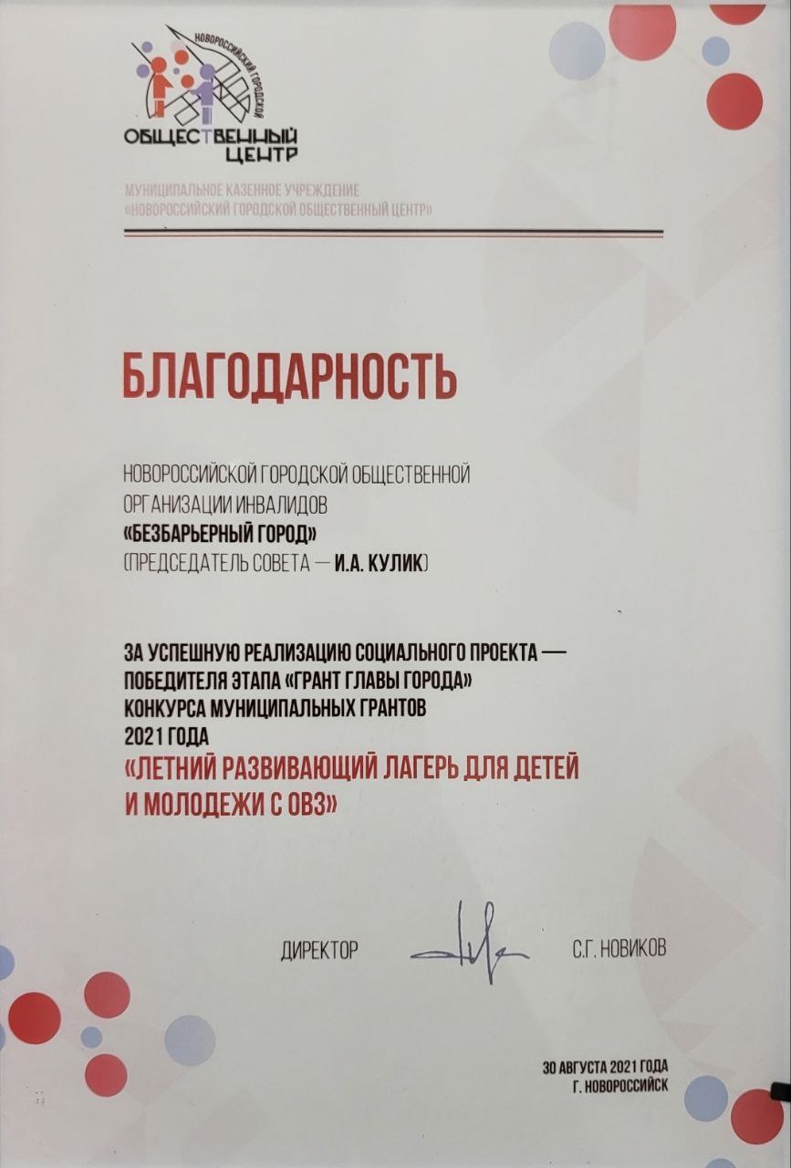 В настоящее время НГООИ «Безбарьерный город» и МБУ «ЦР ДМ ОВЗ «Мир без границ» тесно сотрудничают в осуществлении программ, связанных с вопросом инвалидности.