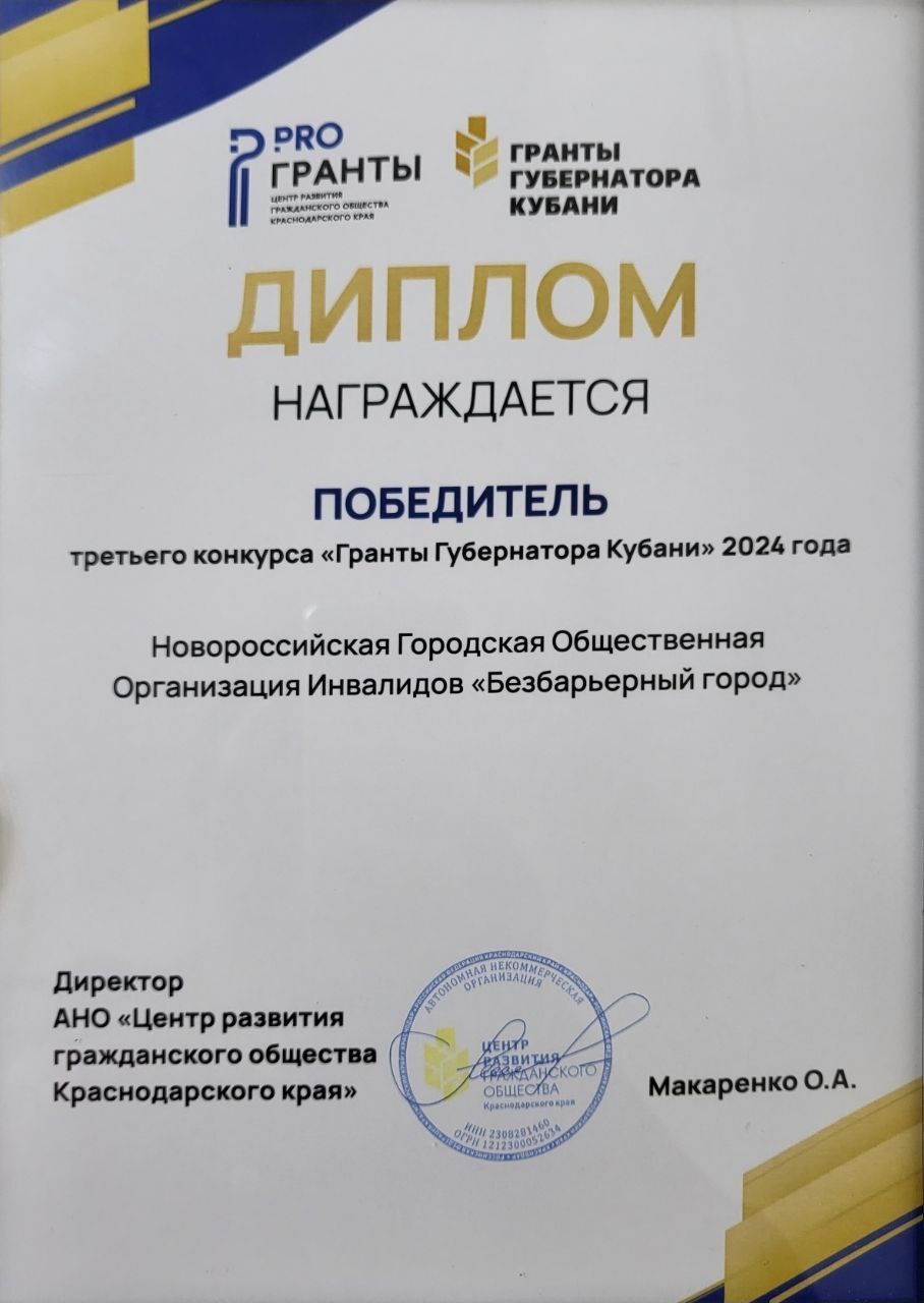 В 2015 году НГООИ «Федерация футбола и спорта инвалидов с заболеванием церебральным параличом» была переименована в НГООИ «Безбарьерный город». Организация является добровольным объединением граждан, объединившихся на основе общности интересов, для представления и защиты интересов инвалидов. Основной целью организации является содействие развитию спорта и творчества среди людей с ограниченными возможностями здоровья. Помощь в реабилитации и социализации людей с инвалидностью.
