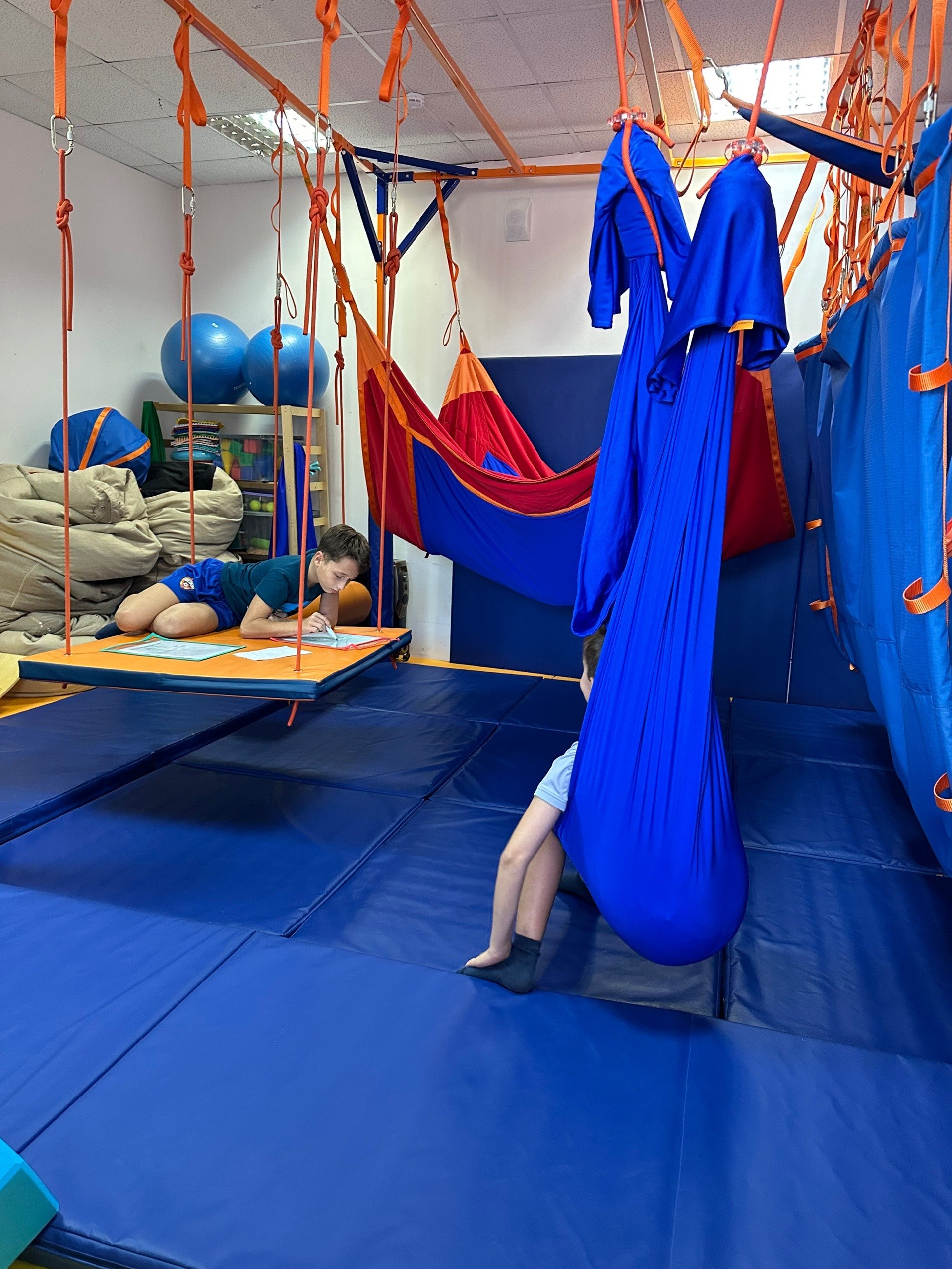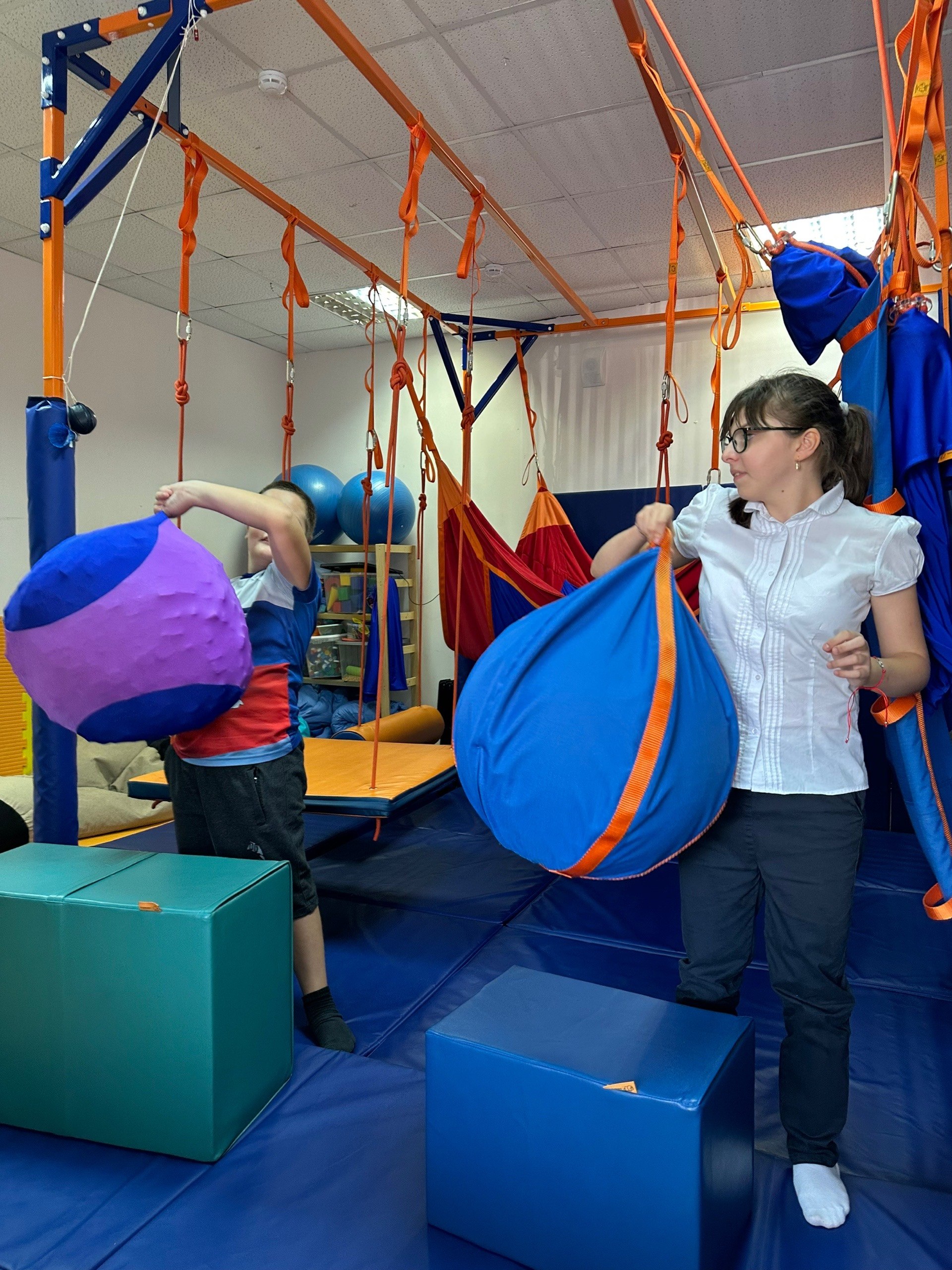 Это уникальное пространство, где дети с ОВЗ могут безопасно развивать моторику, координацию и восприятие через специальные тренировки и сенсорные игры.